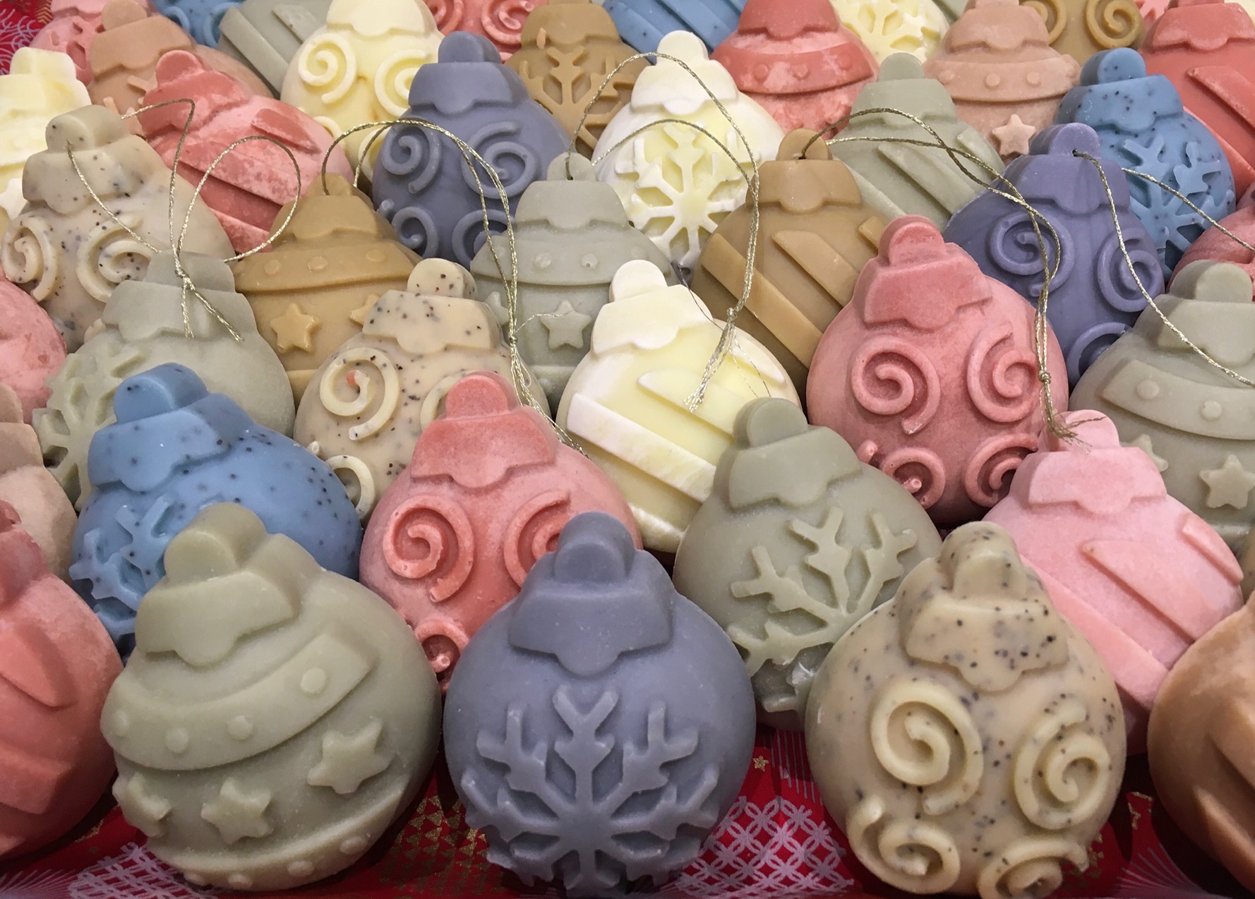 A l’occasion des fêtes de fin d’année, Aléabulles vous propose un joli savon en forme de demi-boule de noël.